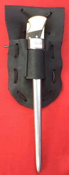 THE DOUBLE SHEATH HAND CRAFTED BY THE BOATSWAIN'SMATE STORE. KNIFE AND MARLINESPIKE NOT INCLUDED